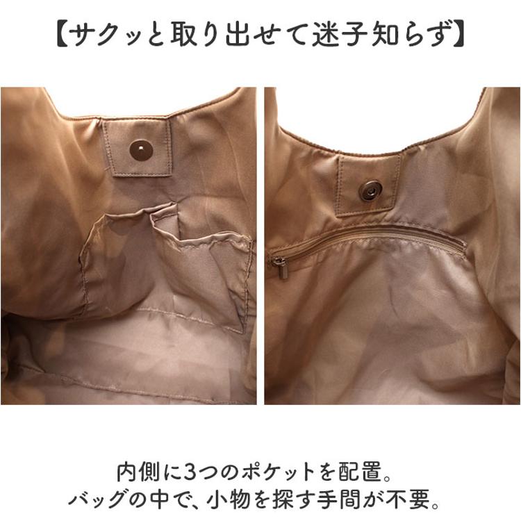 ・内側に3つのポケットを配置。バッグの中で、小物を探す手間が不要。
