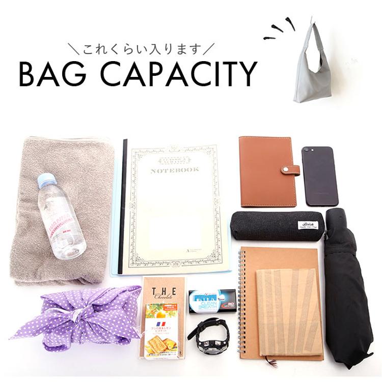・A4が横向きにぴったり。ドリンクボトルやポーチなど、必需品をこれ1つに収納。