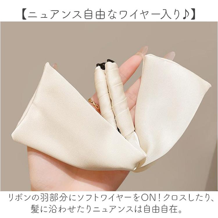・リボンの羽部分にソフトワイヤーをON!クロスしたり、髪に沿わせたりニュアンスは自由自在。