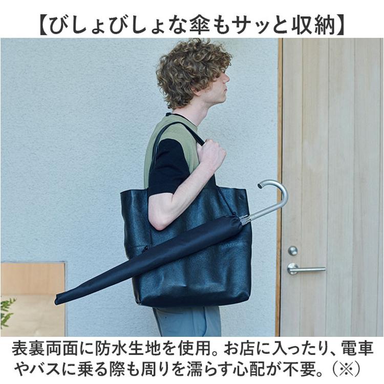 ・表裏両面に防水生地を使用。お店に入ったり、電車やバスに乗る際も周りを濡らす心配が不要。