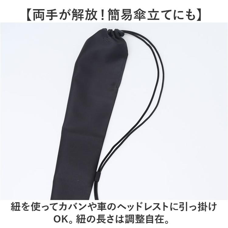 ・傘を収納し、開口部にある紐をコードストッパーでキュッと絞れば固定可能。