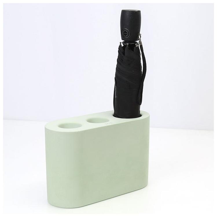 ・傘をまっすぐ挿して収納できる3つの穴を配置し、そのうち1つは折りたたみ傘をすっぽりと収納できるよう大きめサイズに設計。シンプルながらも工夫が凝らされたデザインに注目!