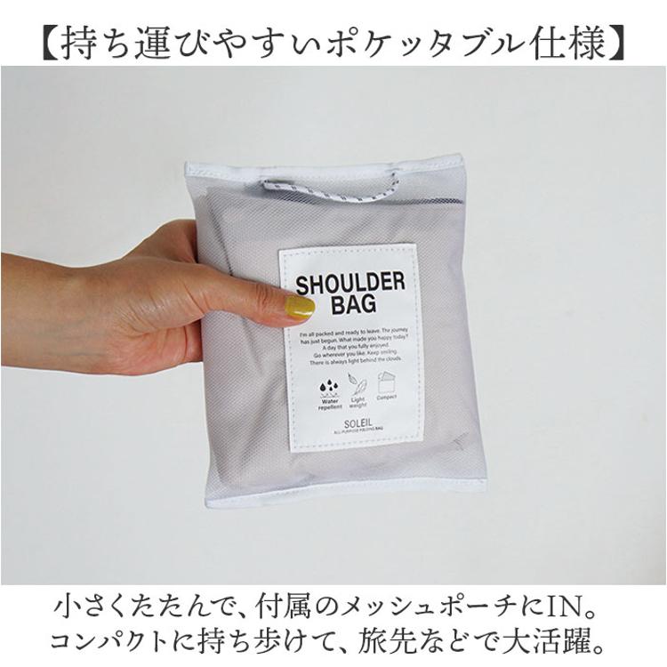 SOLEIL ショルダーバッグ 60033 ソレイユ 通販 ショルダーバック 斜めがけバッグ 折りたたみバッグ ショルダー レディース メンズ 大きめ 軽量 軽い ポケッタブル コンパクト 撥水 旅行