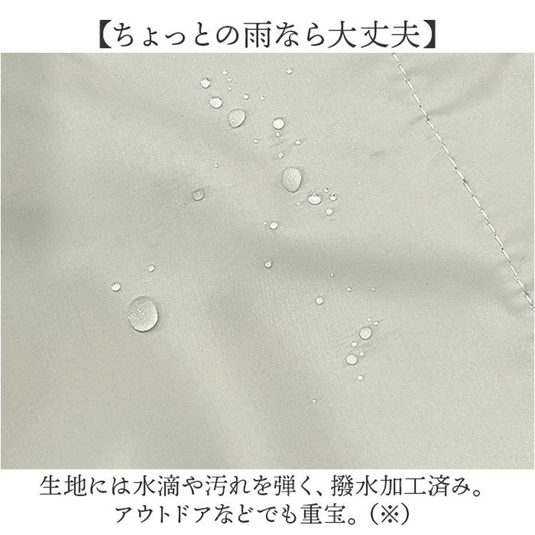 ・生地には水滴や汚れを弾く、撥水加工済み。アウトドアなどでも重宝。