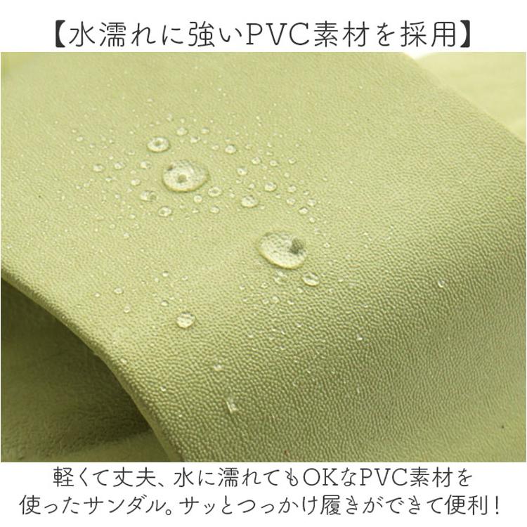 ・軽くて丈夫、水に濡れてもOKなPVC素材を使ったサンダル。サッとつっかけ履きができて便利!