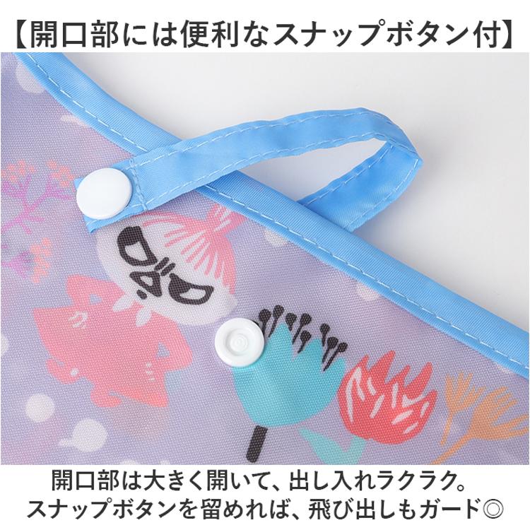 ・開口部は大きく開いて、出し入れラクラク。スナップボタンを留めれば、飛び出しもガード◎