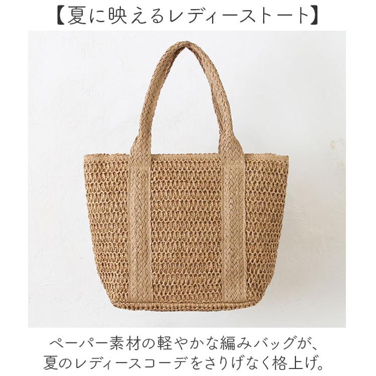 ・ペーパー素材の軽やかな編みバッグが、夏のレディースコーデをさりげなく格上げ。