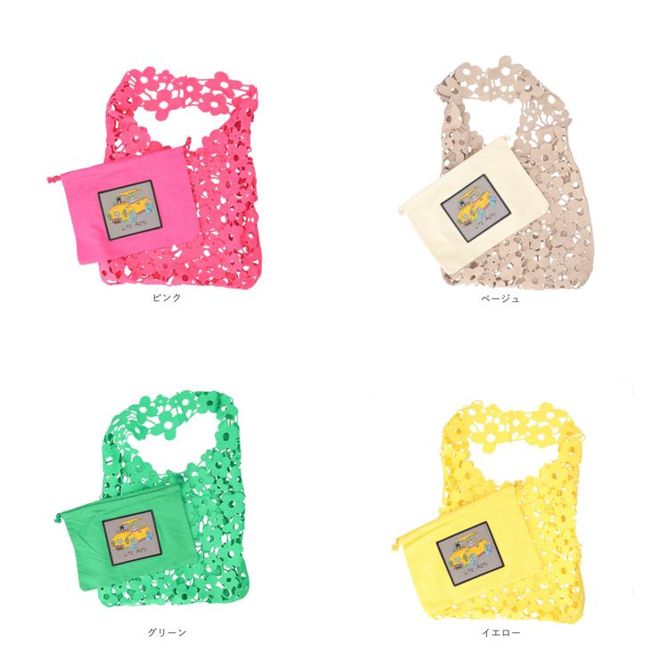 ・ざっくりと編みあげられた花柄が可愛い、涼しげなトートバッグ♪