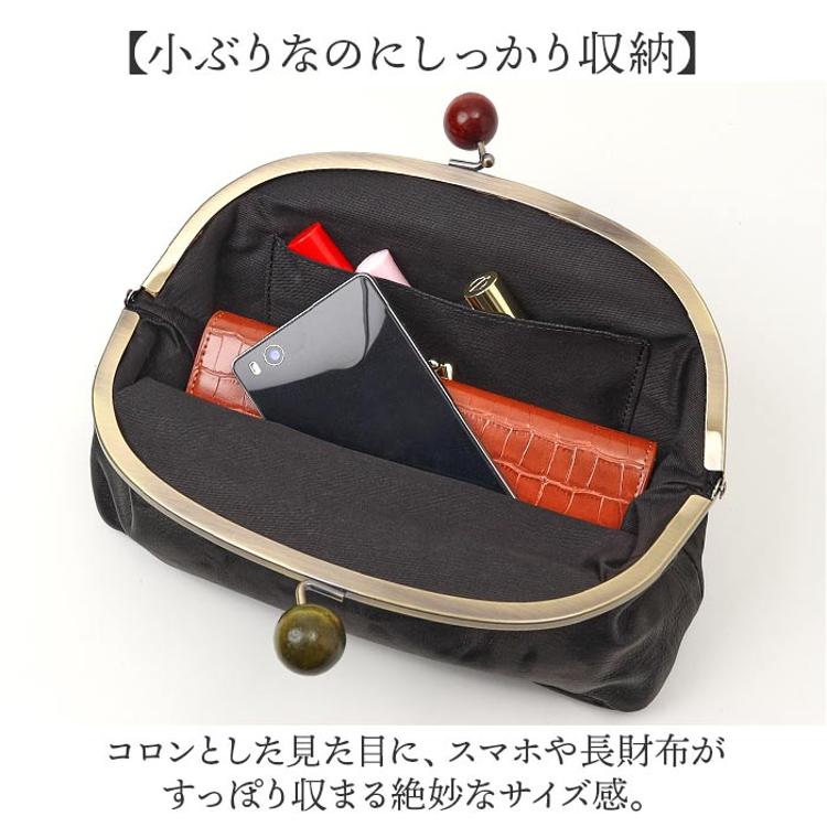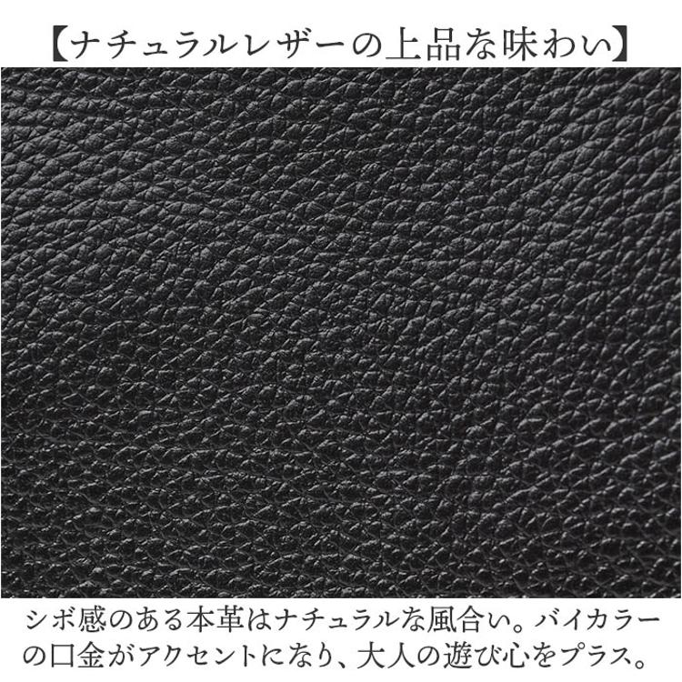 ・シボ感のある本革はナチュラルな風合い。バイカラーの口金がアクセントになり、大人の遊び心をプラス。