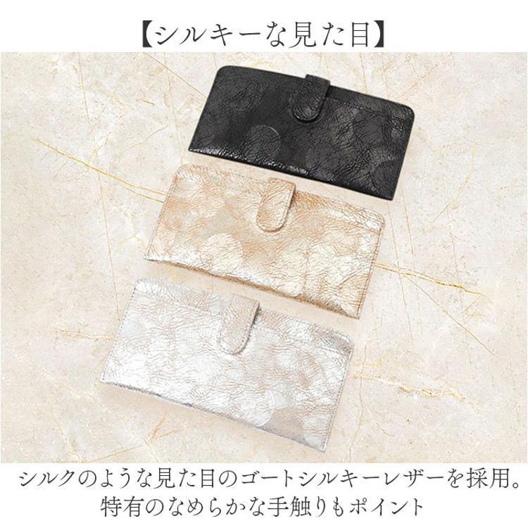 ・シルクのような見た目のゴートシルキーレザーを採用。特有のなめらかな手触りもポイント