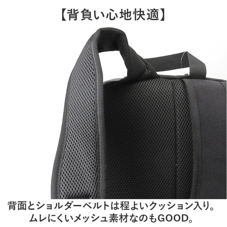 ・背面とショルダーベルトは程よいクッション入り。ムレにくいメッシュ素材なのもGOOD。