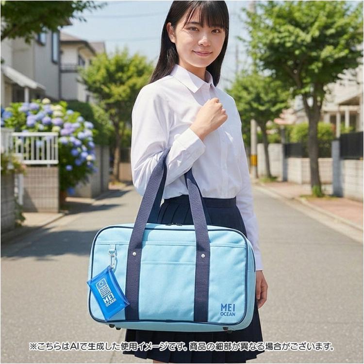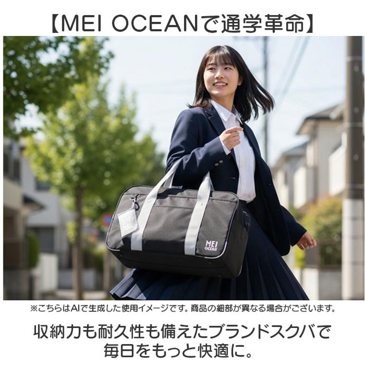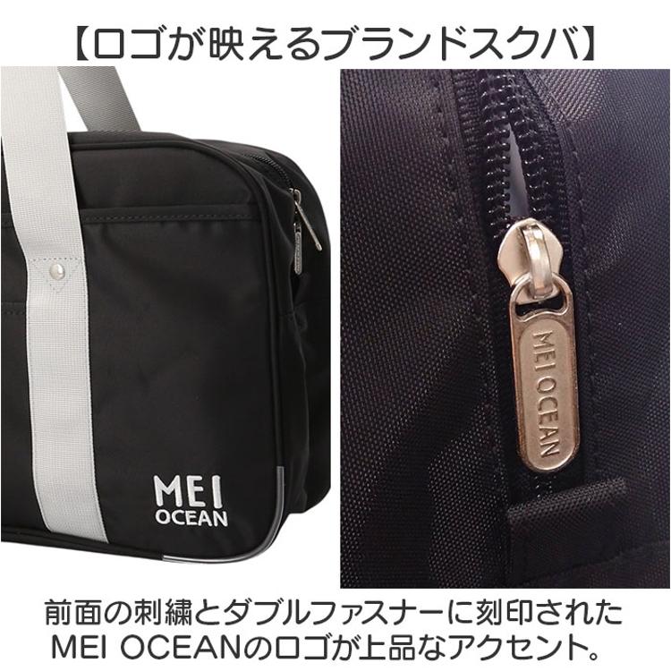 ・前面の刺繍とダブルファスナーに刻印されたMEI OCEANのロゴが上品なアクセント。
