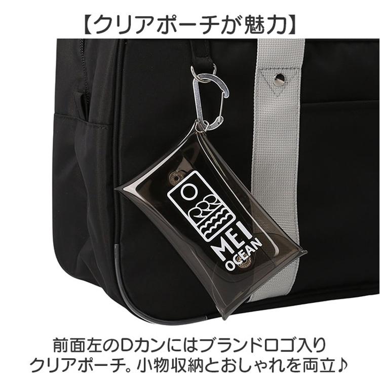 ・前面左のDカンにはブランドロゴ入りクリアポーチ。小物収納とおしゃれを両立◎