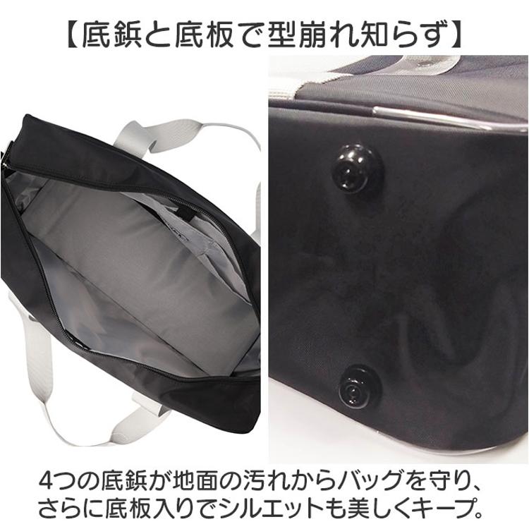 4つの底鋲が地面の汚れからバッグを守り、さらに底板入りでシルエットも美しくキープ〇