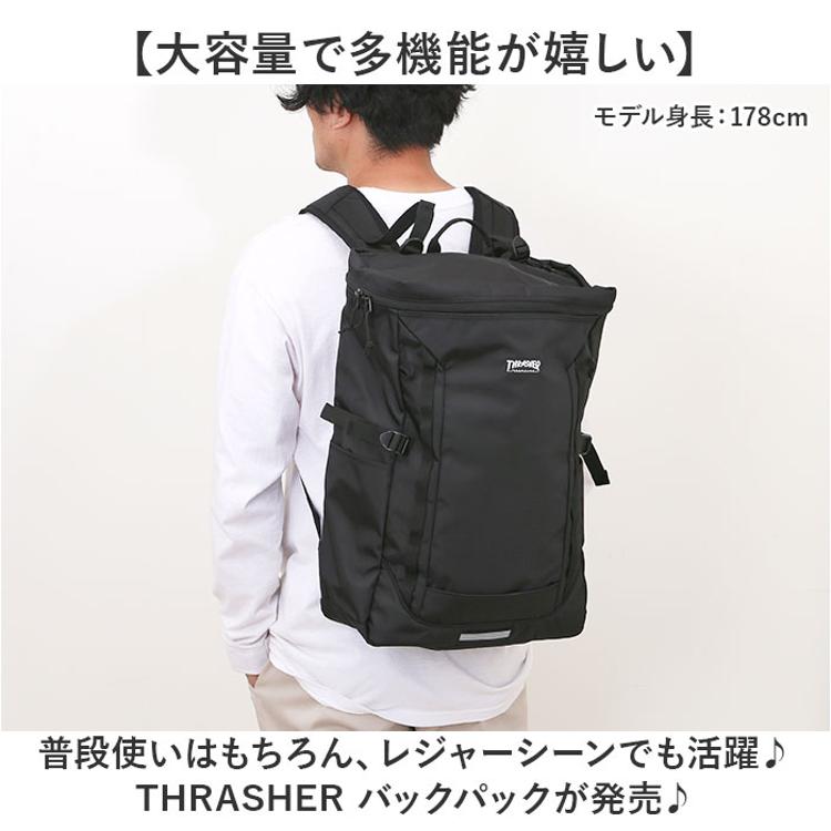THRASHER スラッシャー リュック THR-321 通販 リュックサック バックパック デイパック メンズ レディース 大人 通学 通勤 黒 ブラック 大容量 A4 ブランド 男子 女子 大学生 高校生 中学生 ビジネス 旅行 ボックス型 メンズバッグ