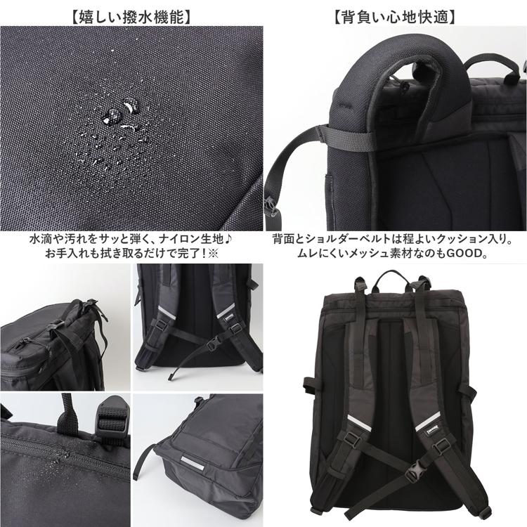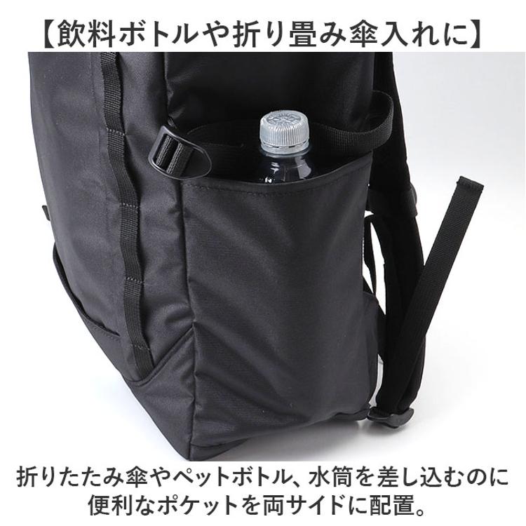 ・折りたたみ傘やペットボトル、水筒を差し込むのに便利なポケットを両サイドに配置。