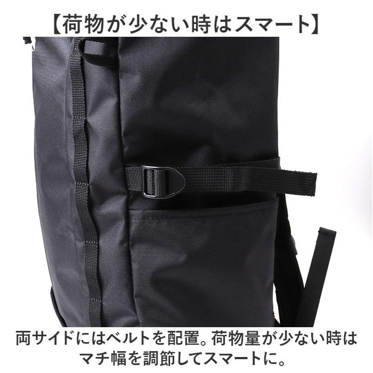 ・両サイドにはベルトを配置。荷物量が少ない時はマチ幅を調節してスマートに。