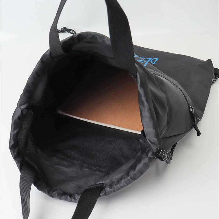 ・ジムや部活帰りにもサッと背負えるコンパクトな巾着型で毎日の外出が身軽に◎