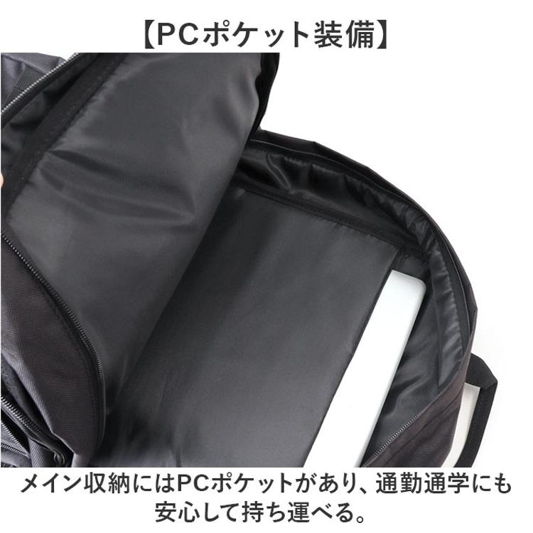 ・メイン収納にはPCポケットがあり、通勤通学にも安心して持ち運べる。