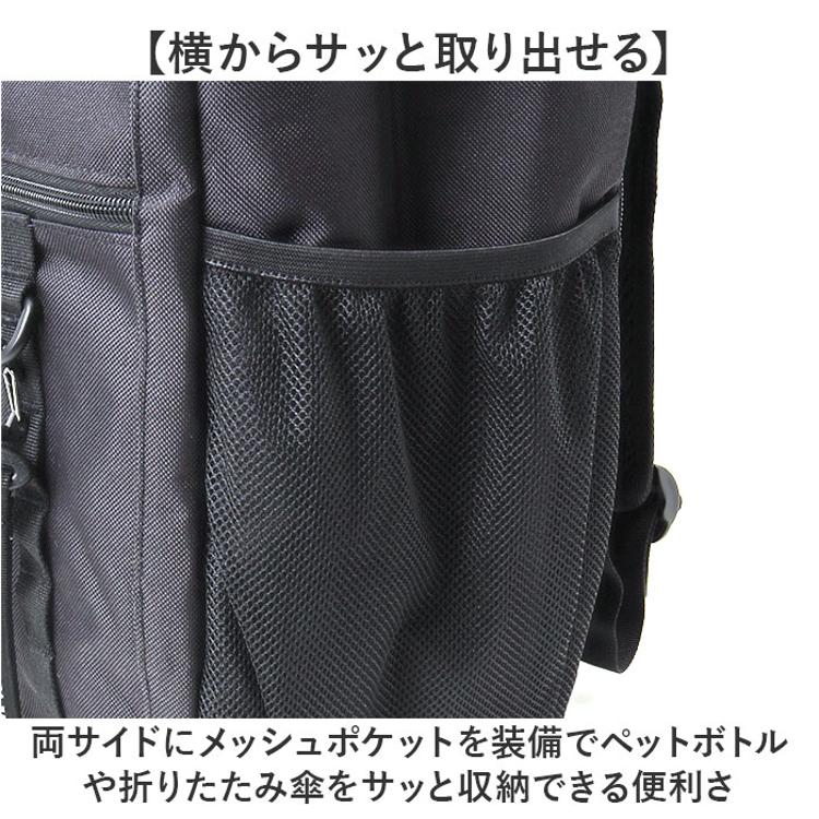 ・両サイドにメッシュポケットを装備でペットボトルや折りたたみ傘をサッと収納できる便利さ