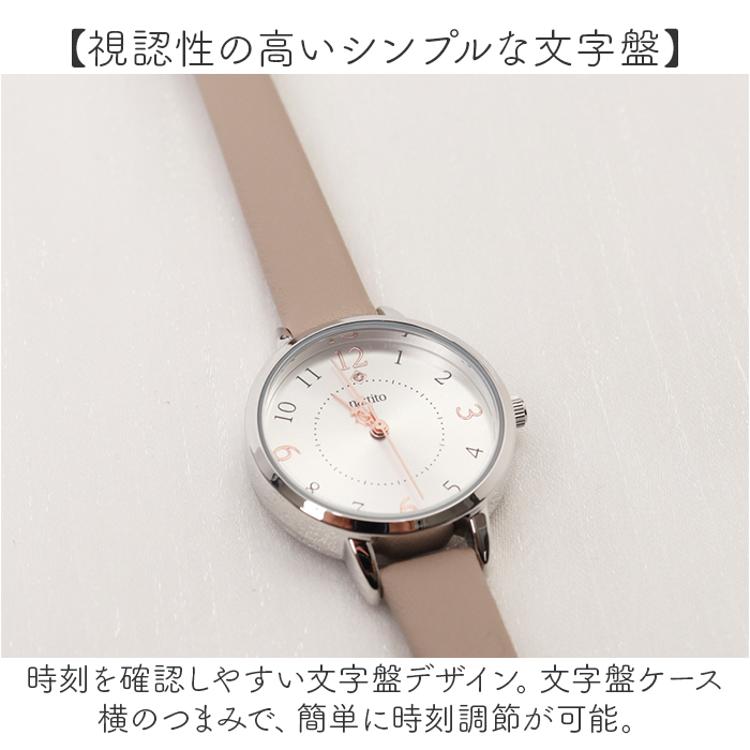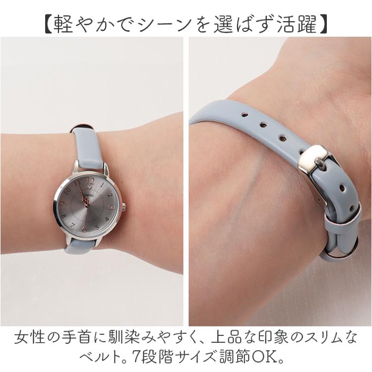・女性の手首に馴染みやすく、上品な印象のスリムなベルト。7段階サイズ調節OK。