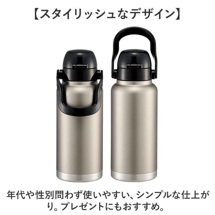 ・本体内側と外側が真空断熱された、ステンレス2重構造タイプ。冷たさが長持ち◎
