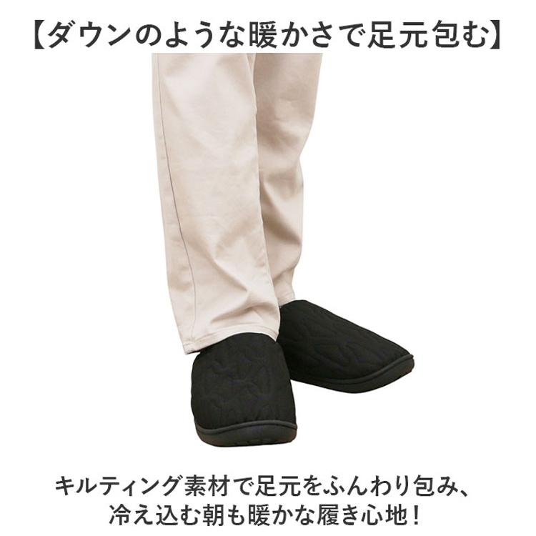 ・キルティング素材で足元をふんわり包み、冷え込む朝も暖かな履き心地!