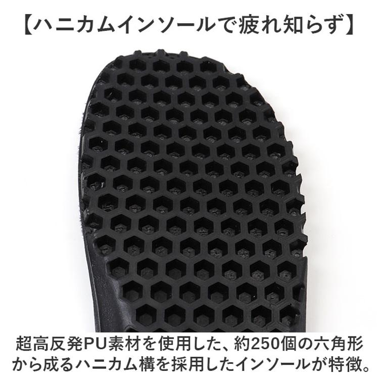 ・超高反発PU素材を使用した、約250個の六角形から成るハニカム構を採用したインソールが特徴。