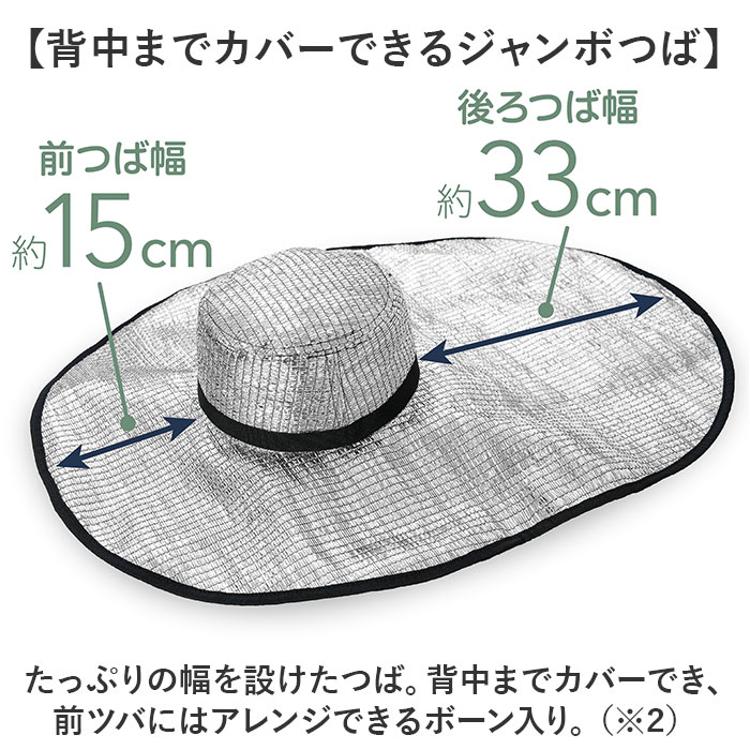 ・機能性が高く、暑い季節の頼れる味方◎「アルミで遮熱 ひも付きジャンボつば広帽子」。
