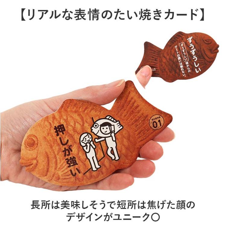 【リアルな表情のたい焼きカード】長所は美味しそうで短所は焦げた顔のデザインがユニーク〇