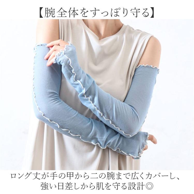 ・ロング丈が手の甲から二の腕まで広くカバーし、強い日差しから肌を守る設計◎