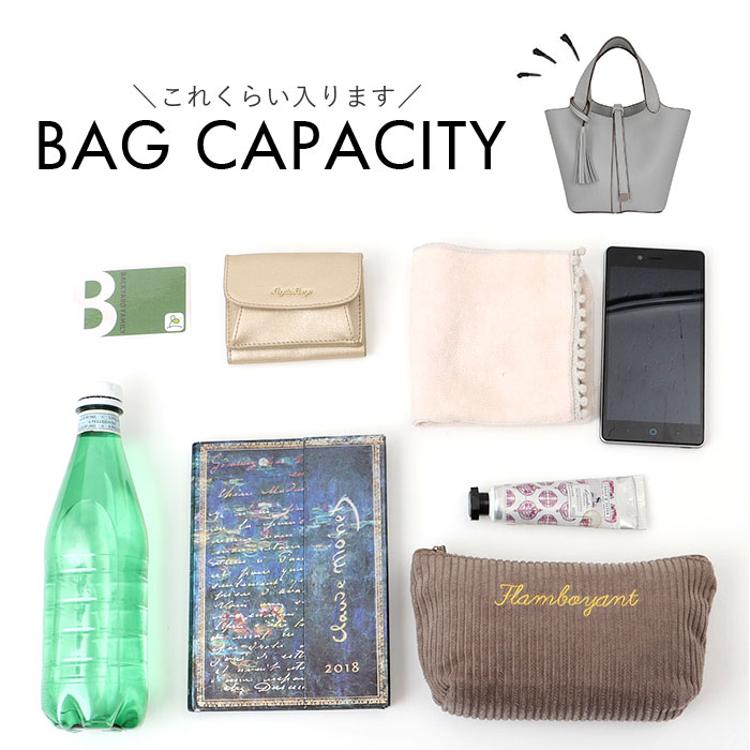 ・軽やかでハリのある、細やかなシボが特徴の合皮素材。タッセルがアクセントに☆