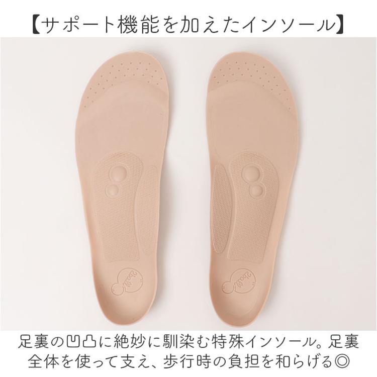 ・足裏の凹凸に絶妙に馴染む特殊インソール。足裏全体を使って支え、歩行時の負担を和らげる◎