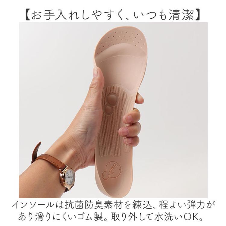 ・インソールは抗菌防臭素材を練込、程よい弾力があり滑りにくいゴム製。取り外して水洗いOK。
