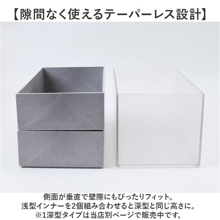 ・側面が垂直で壁際にもぴったりフィット。浅型インナーを2個組み合わせると深型と同じ高さに。