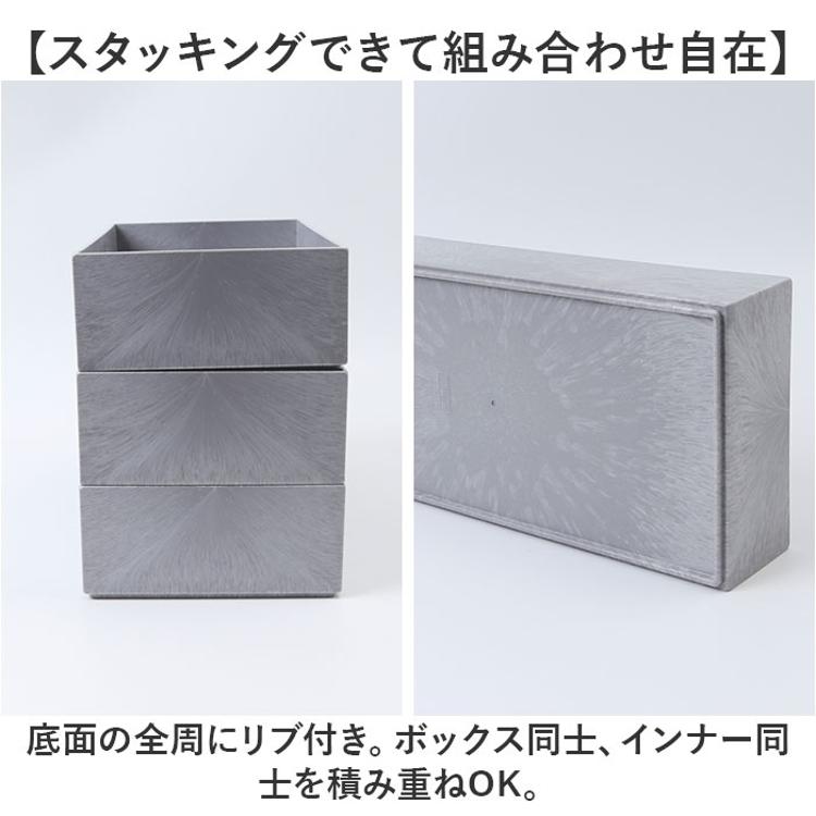 ・底面の全周にリブ付き。ボックス同士、インナー同士を積み重ねOK。
