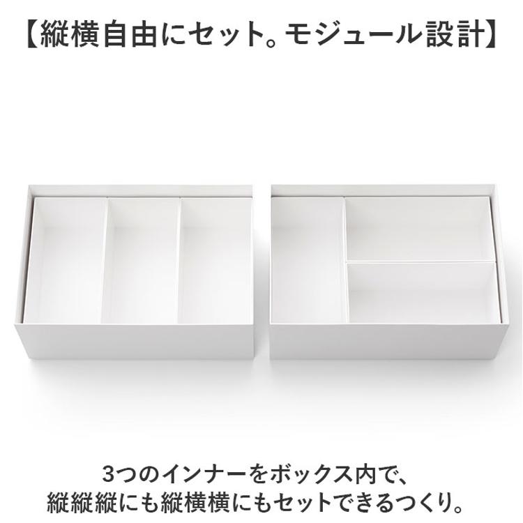 ・3つのインナーをボックス内で、縦縦縦にも縦横横にもセットできるつくり。