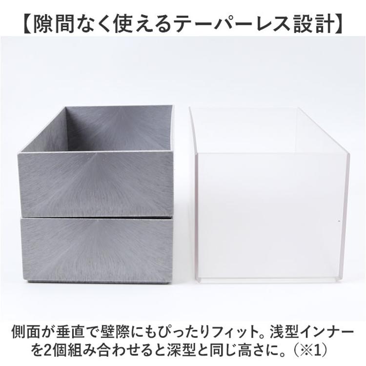 ・側面が垂直で壁際にもぴったりフィット。浅型インナーを2個組み合わせると深型と同じ高さに。