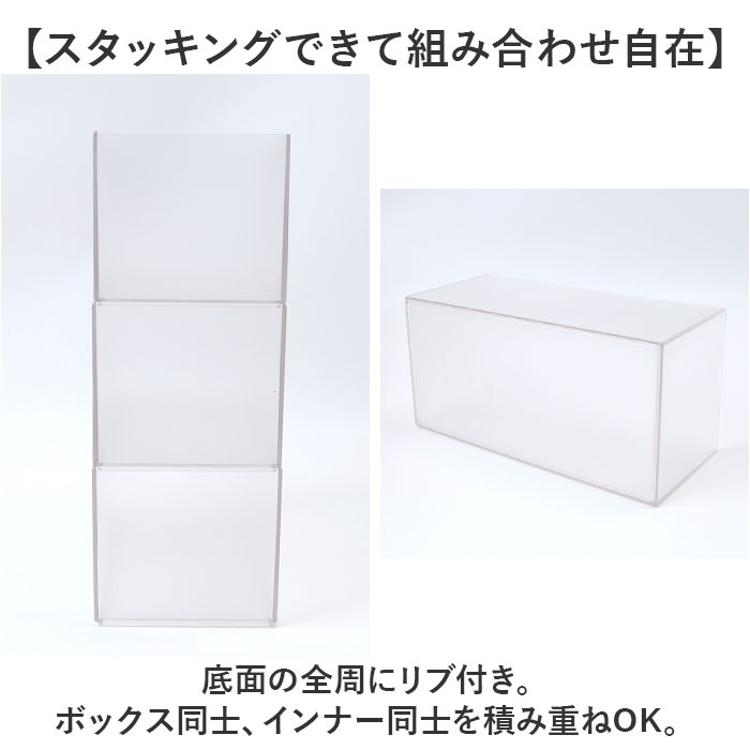 ・底面の全周にリブ付き。ボックス同士、インナー同士を積み重ねOK。