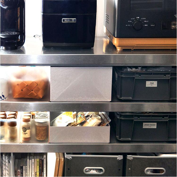 ・オープンシェルフやパントリーに!扉がない収納棚に置いてもサマになる♪