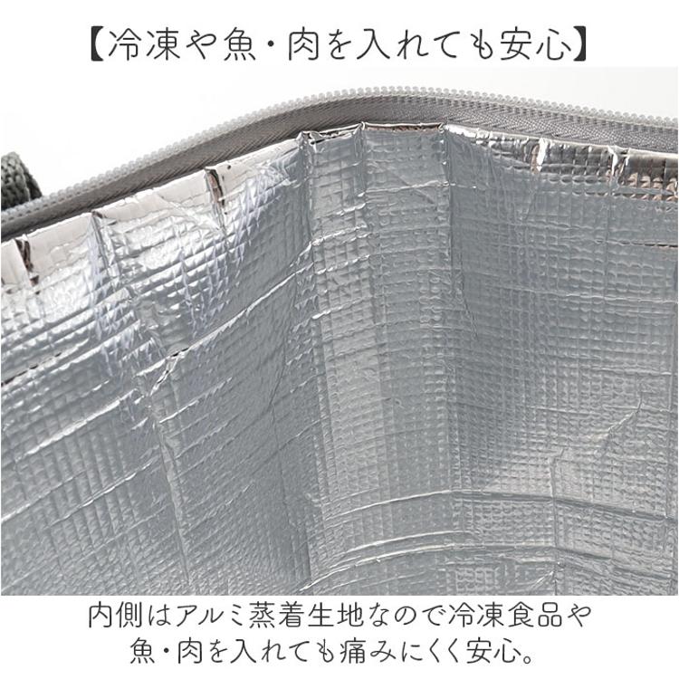 ・内側はアルミ蒸着生地なので冷凍食品や魚・肉を入れても痛みにくく安心。