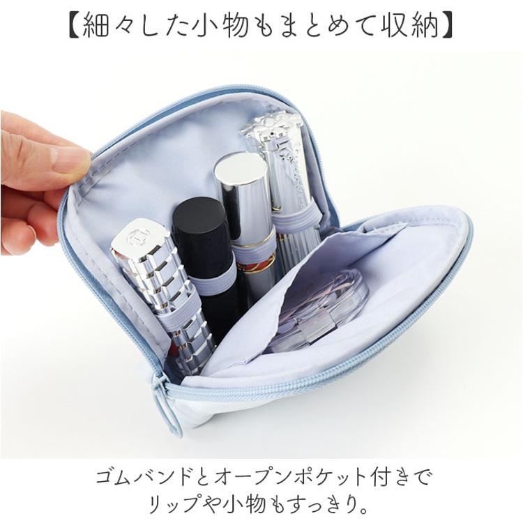・ゴムバンドとオープンポケット付きでリップや小物もすっきり。