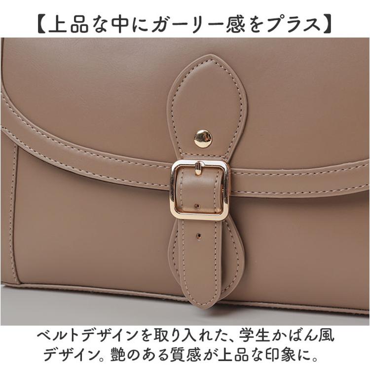 ・ベルトデザインを取り入れた、学生かばん風デザイン。艶のある質感が上品な印象に。