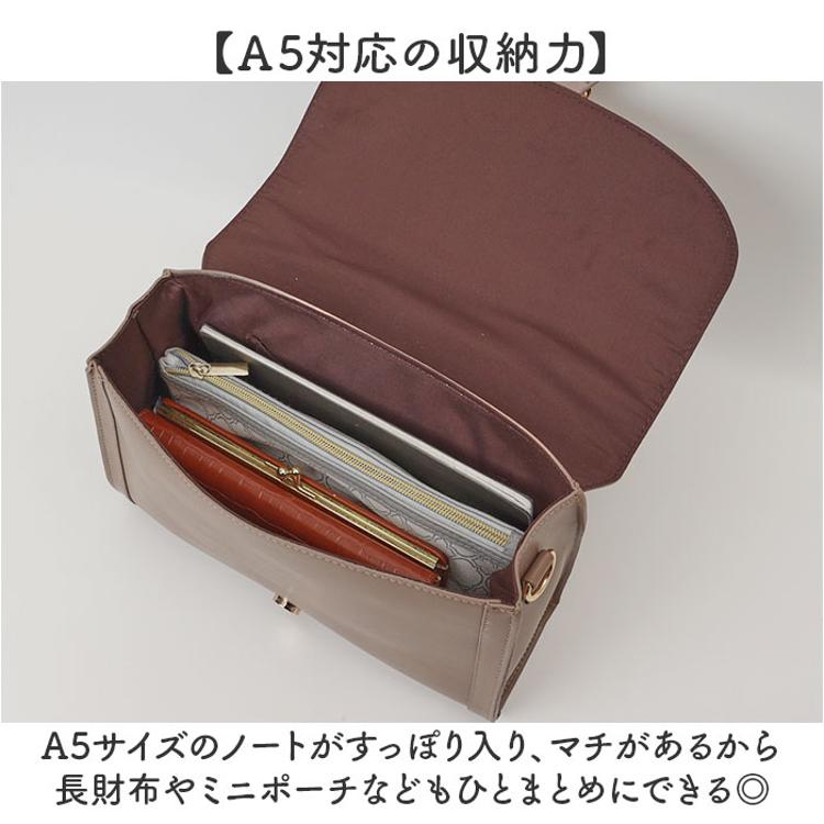 ・A5サイズのノートがすっぽり入り、マチがあるから長財布やミニポーチなどもひとまとめにできる◎