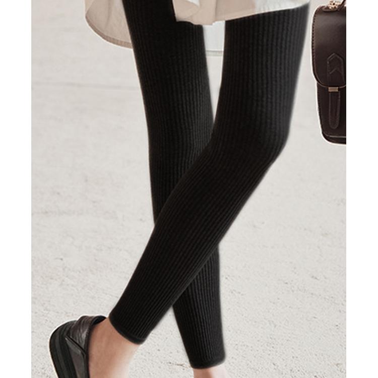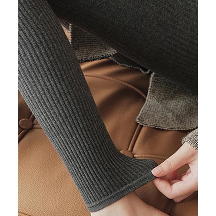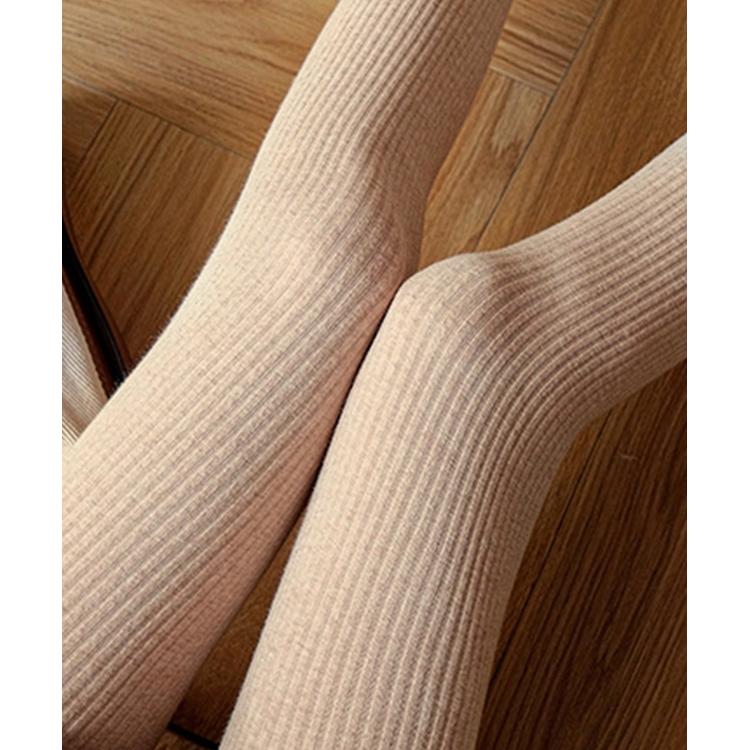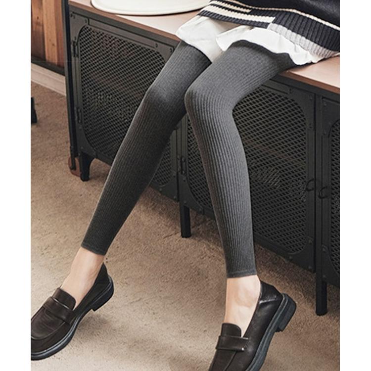 ・細身の作りで着圧美脚。伸縮性のある素材の縦リブデザインが脚にフィットして、すっきりとしたラインを演出。