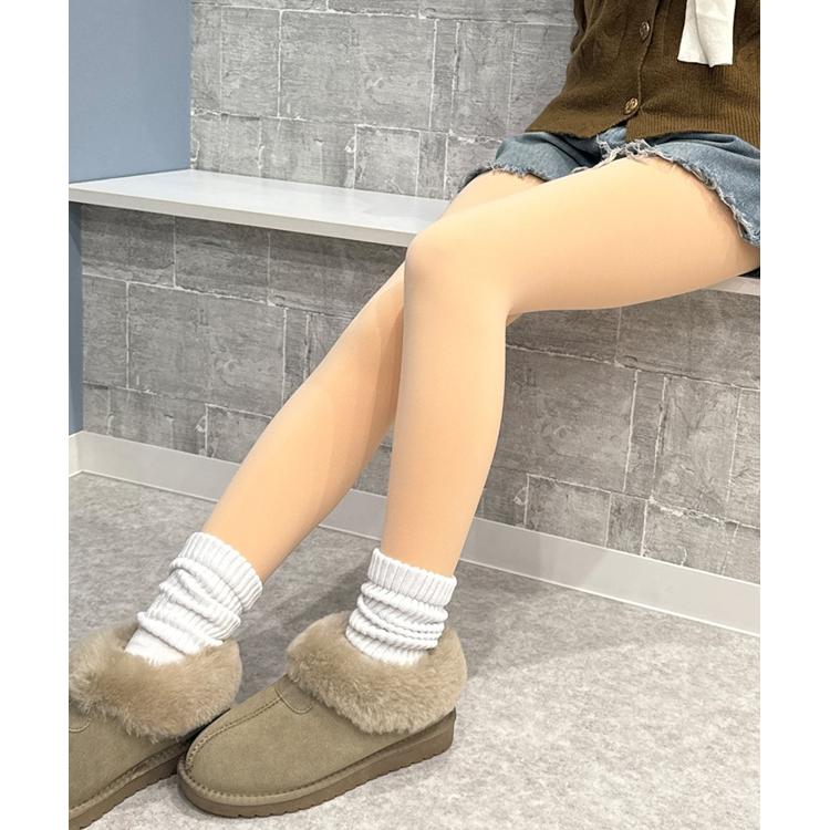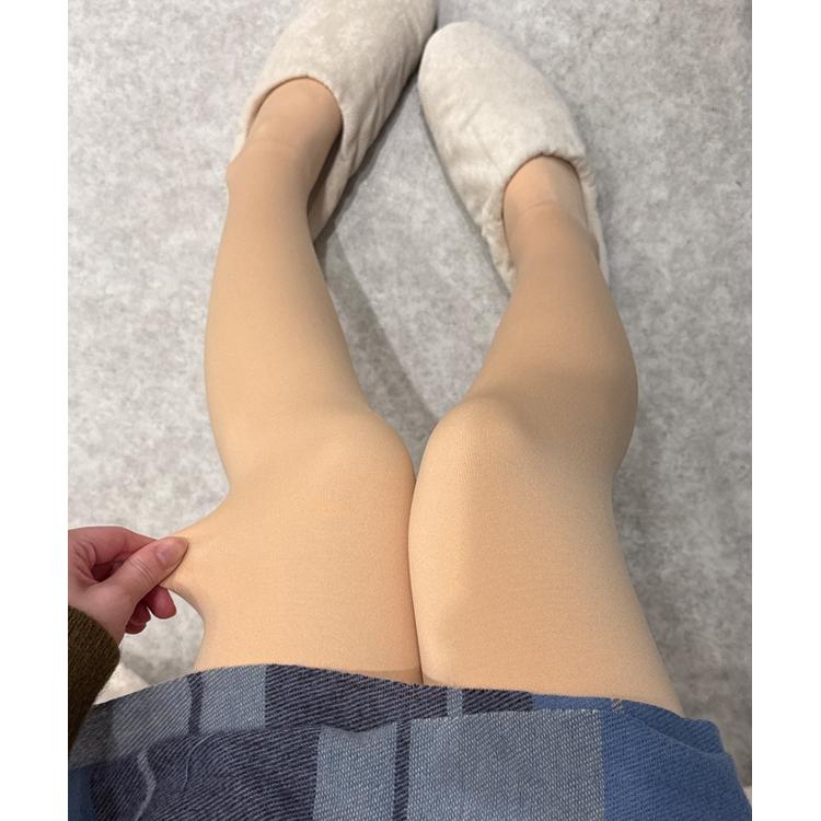 ・内側はふんわり柔らかな裏起毛で快適なぬくもり、外側はなめらかなスキン風仕上げで美脚を演出。