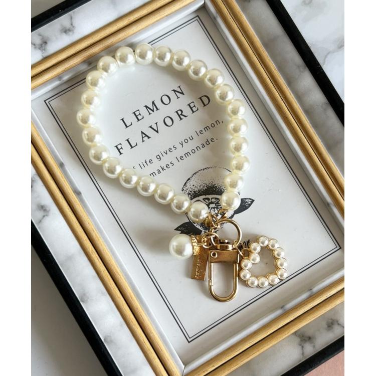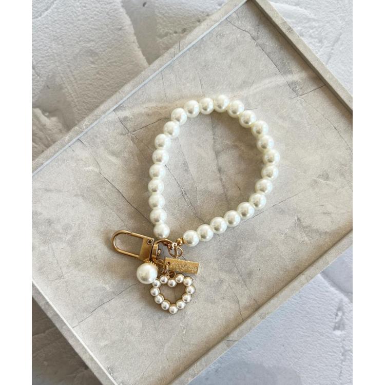 ・艶やかなパールビーズが連なったループに、ハートモチーフやゴールドチャームをあしらい、フェミニンで高級感のあるデザイン。