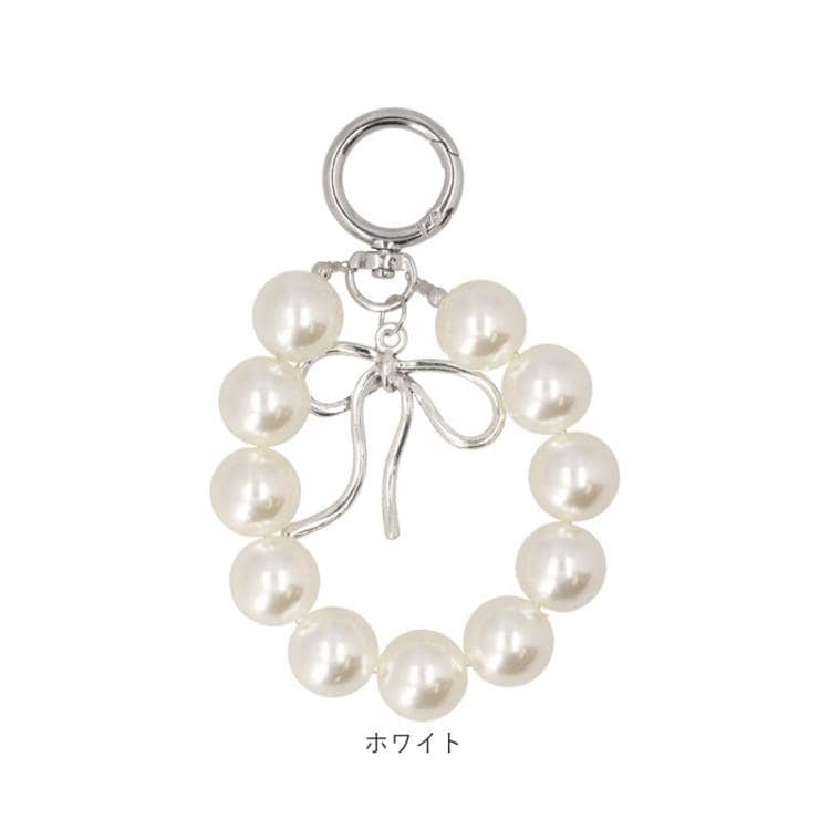 商品説明・上品な光沢を放つパール調ビーズを連ねたキーチャーム。