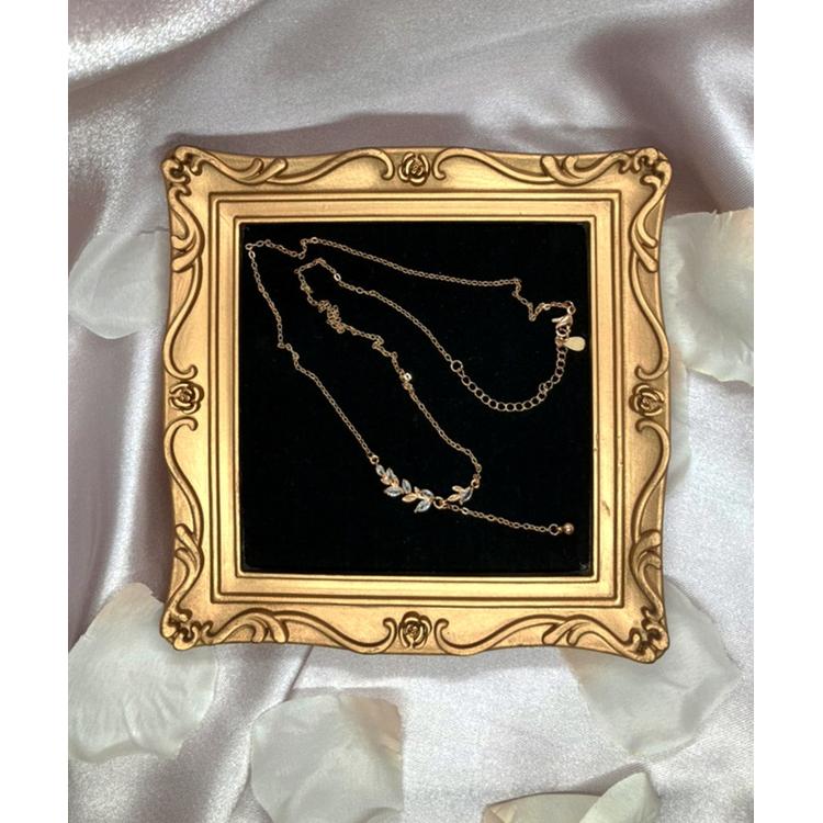 商品説明・リーフデザインのチャームとラインストーンがかわいいネックレス。