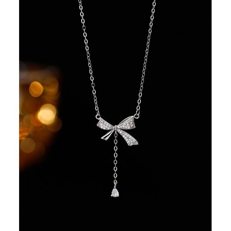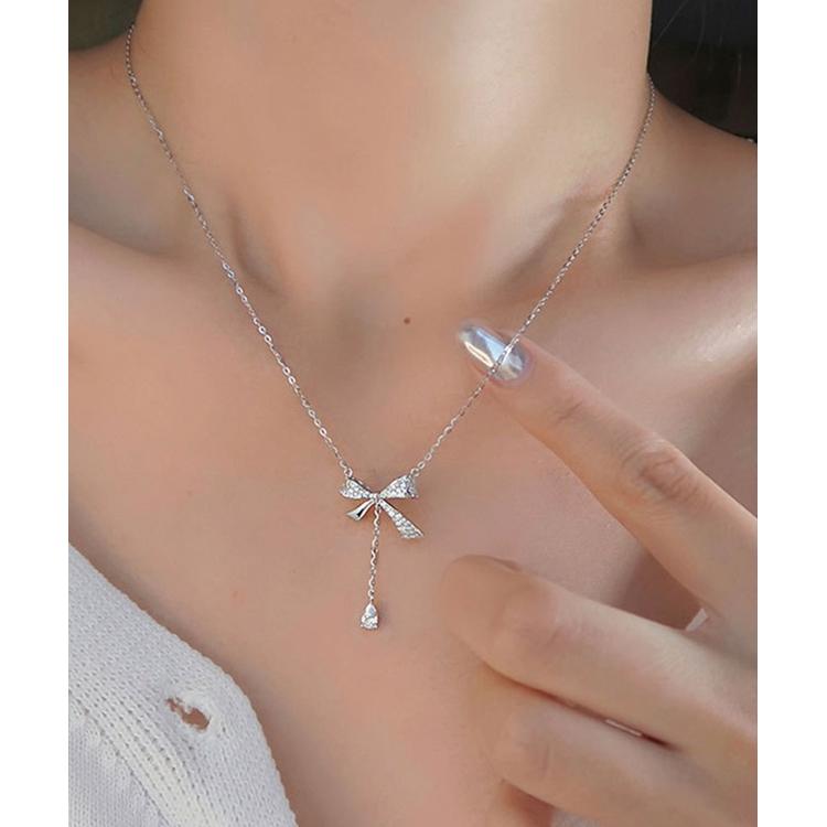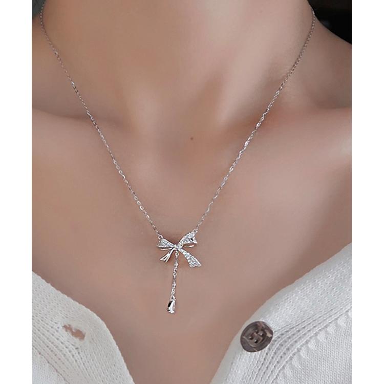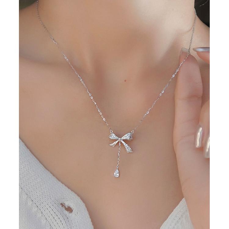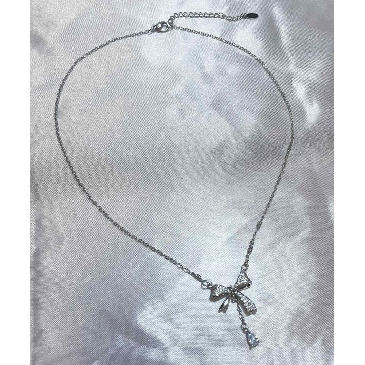 ・シルバーのリボンモチーフが上品さを添え、大人可愛い雰囲気に。